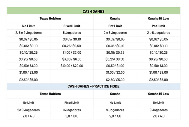 Nas mesas de cash Poker você tem a opção de jogar com 2, 6 ou até 9 pessoas sendo Hold’em, Omaha Hi ou Omaha Hi Low. Isso também é um grande diferencial das mesas cash, já que jogando com menos pessoas, as suas chances de ganhar também aumentam.